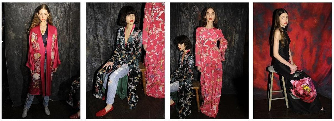 Flowers were digitally embroidered on silk kimono robes and maxi dresses.