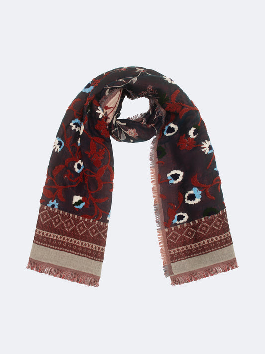 SOFT COTTON EMBROIDERED FLORAL SCARF NAVY