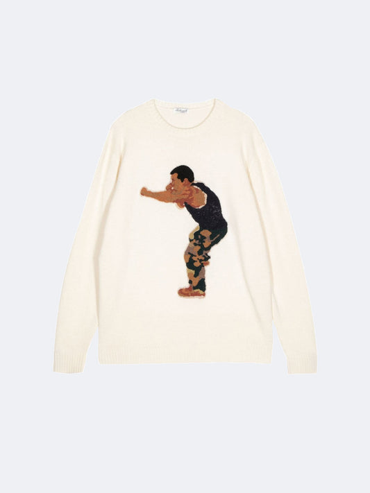 EMBROIDERED BOXER CREWNECK KNIT CREAM