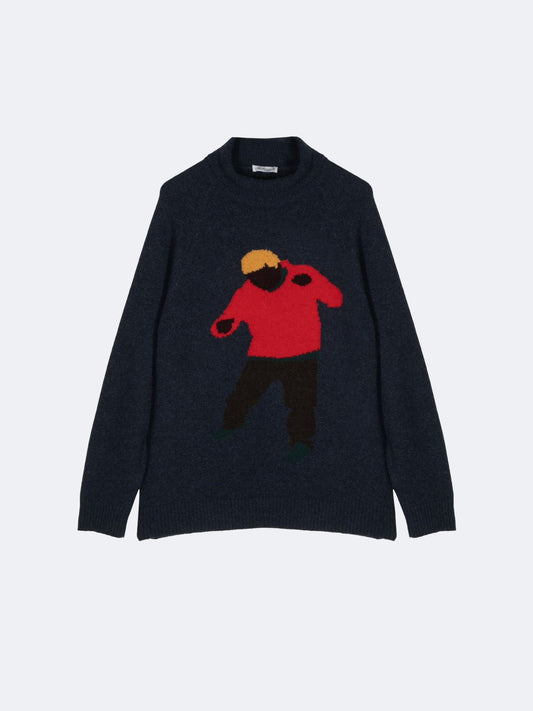 INTARSIA BOXER ROLL NECK NAVY