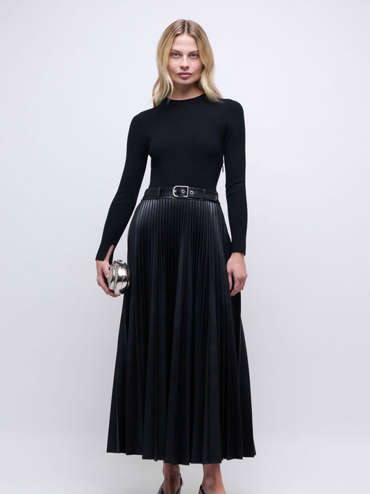 ABILENE BELTED LEATHER DRESS BLACK