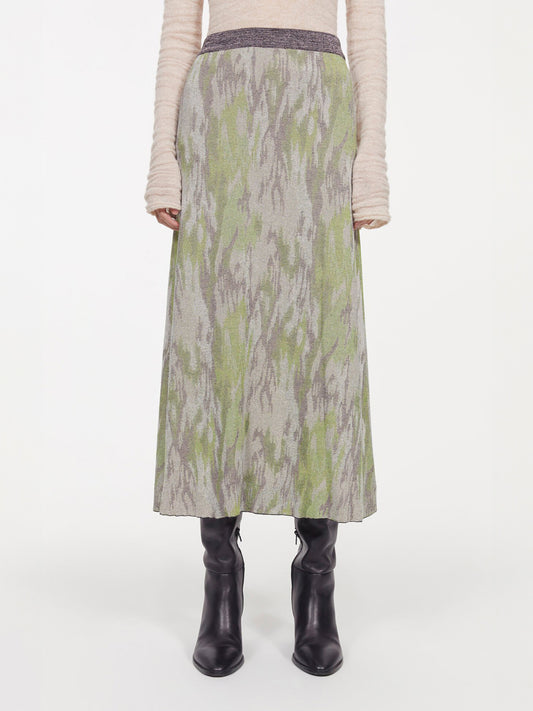 LILOU SILK RUFFLE SKIRT CYPRESS