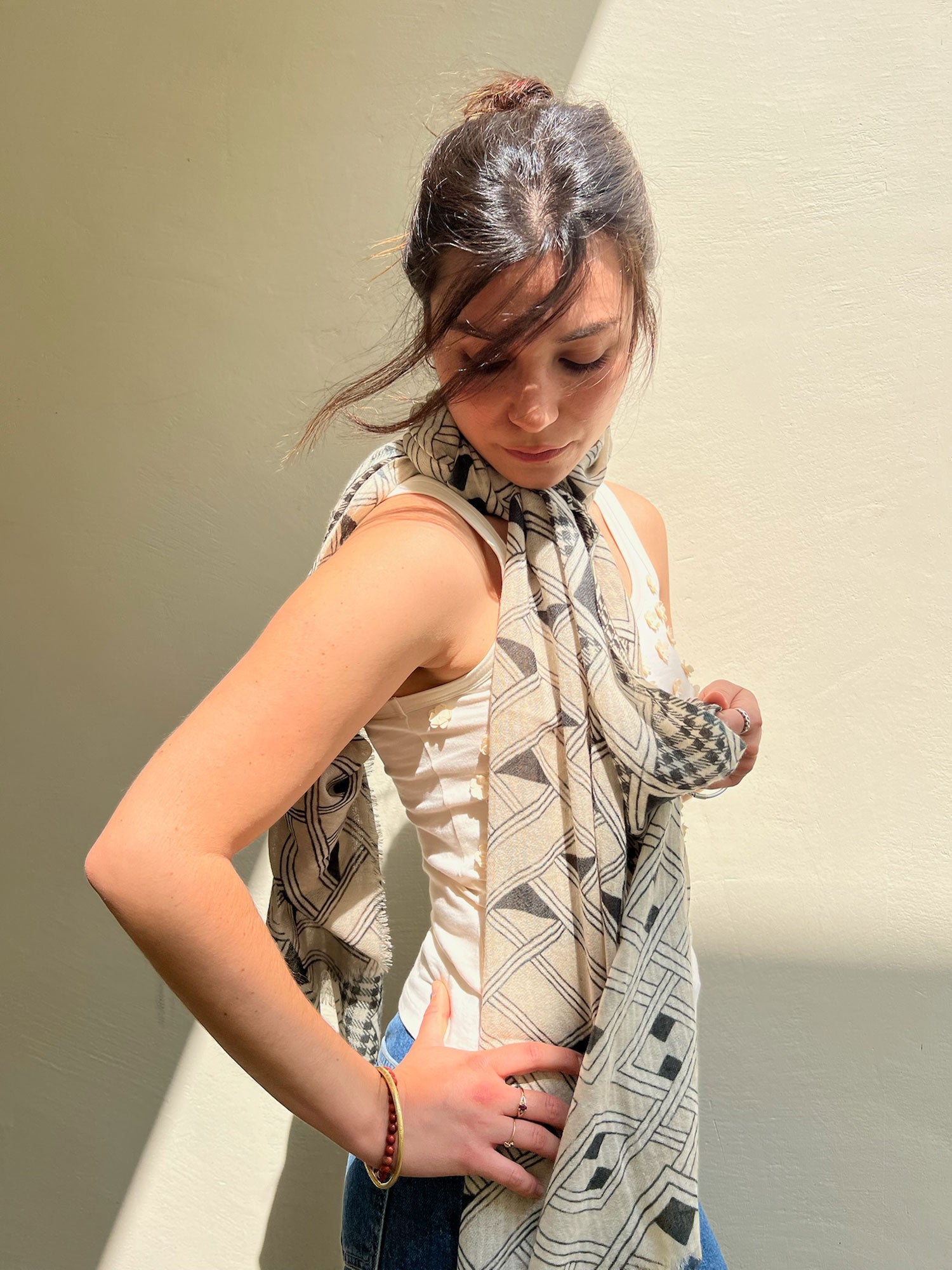 Wrap yourself in timeless sophistication with this Argyle-printed scarf, crafted in India from a sumptuous blend of wool and silk. The classic diamond motif is reimagined with a modern touch, offering both heritage charm and contemporary appeal. Soft against the skin, light yet warm, this scarf is a versatile statement of luxury and elegance.