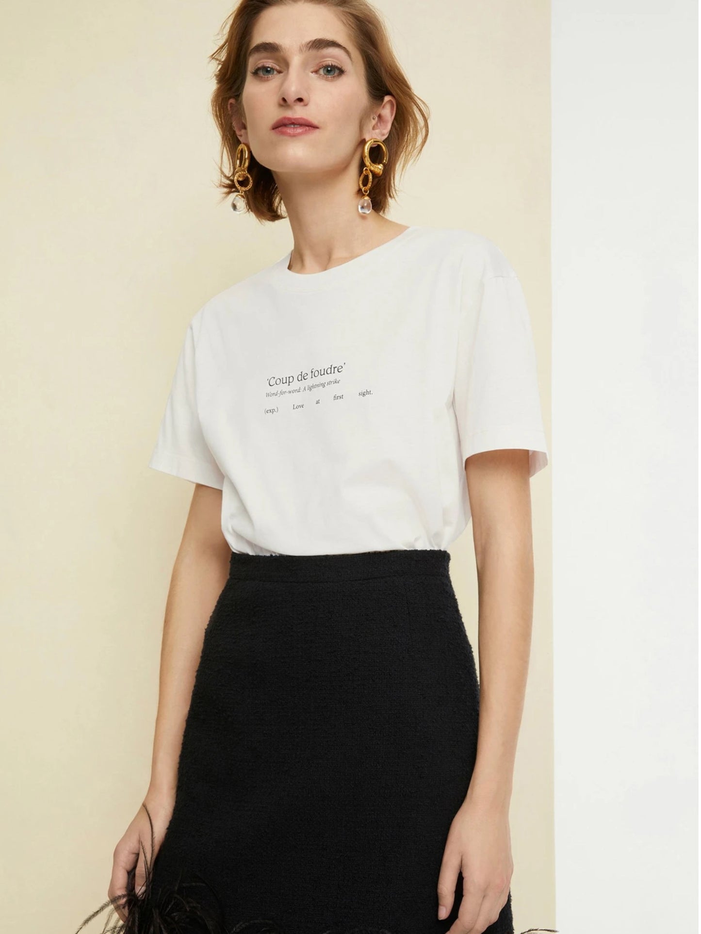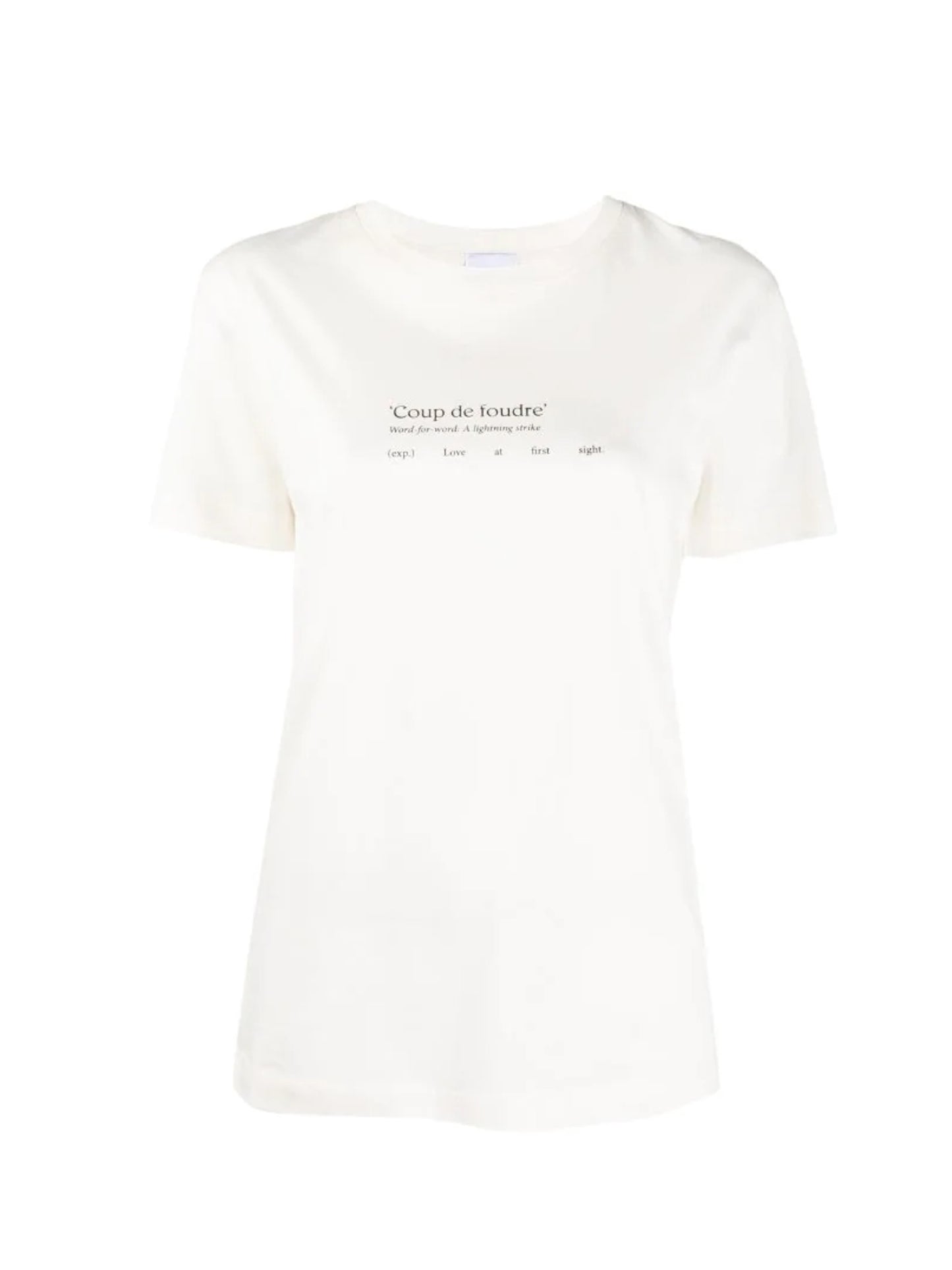 T-shirt ras du cou en coton biologique blanc. Coupe standard. Imprimé inspiré du dictionnaire sur le devant, logo au dos.