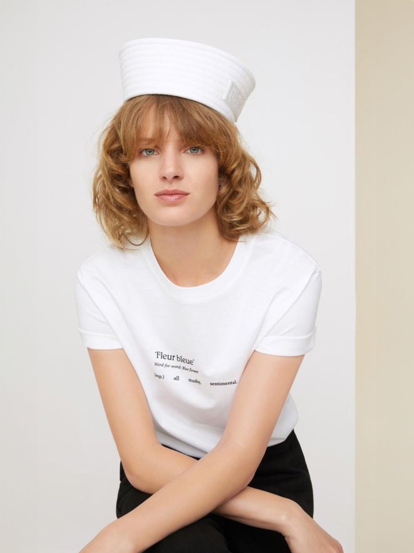 T-shirt ras du cou en coton biologique blanc. Coupe standard. Imprimé inspiré du dictionnaire sur le devant, logo au dos.
