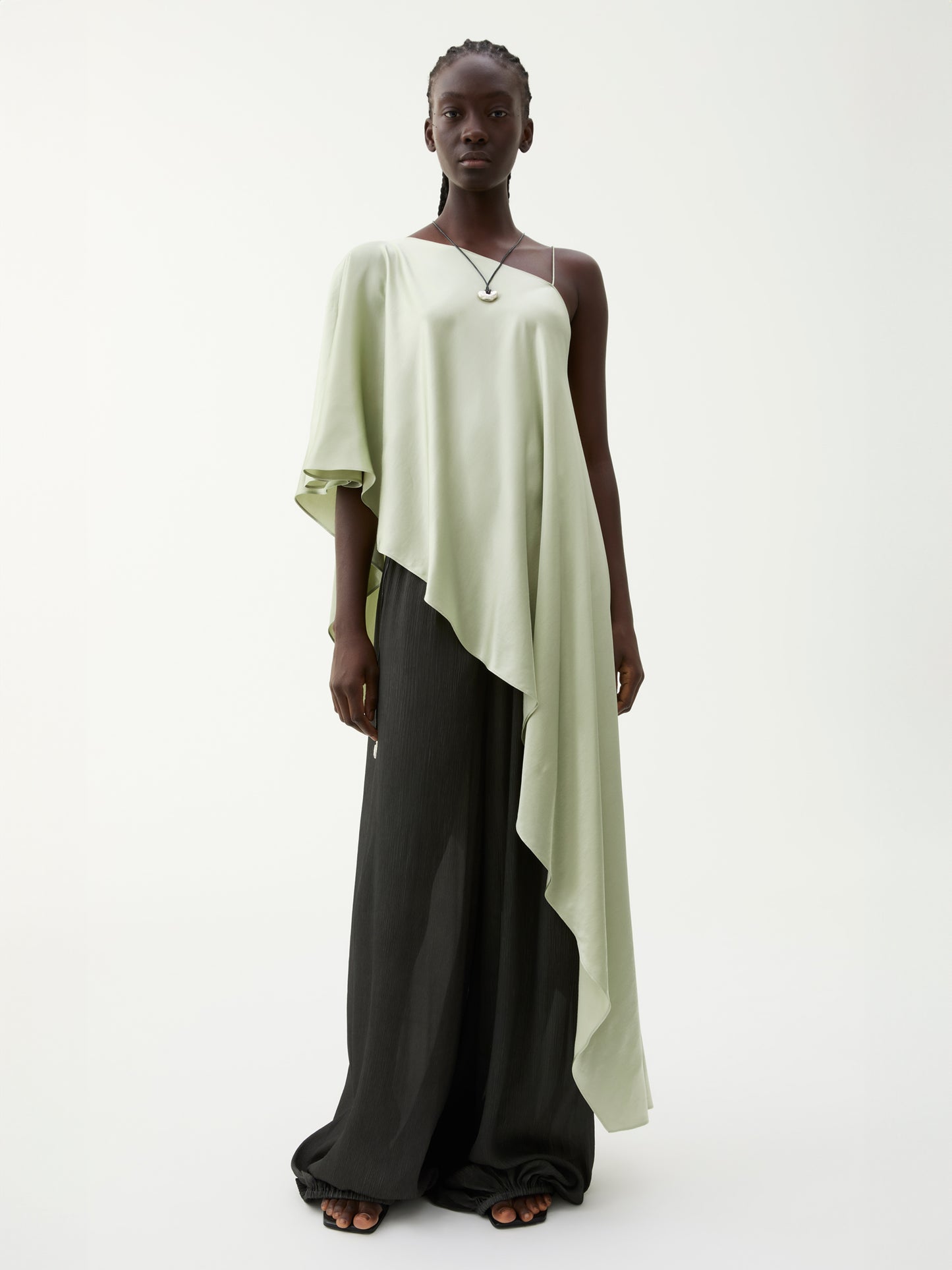 MELISSA ASYMMETRIC DRAPED TOP DUSTY GREEN