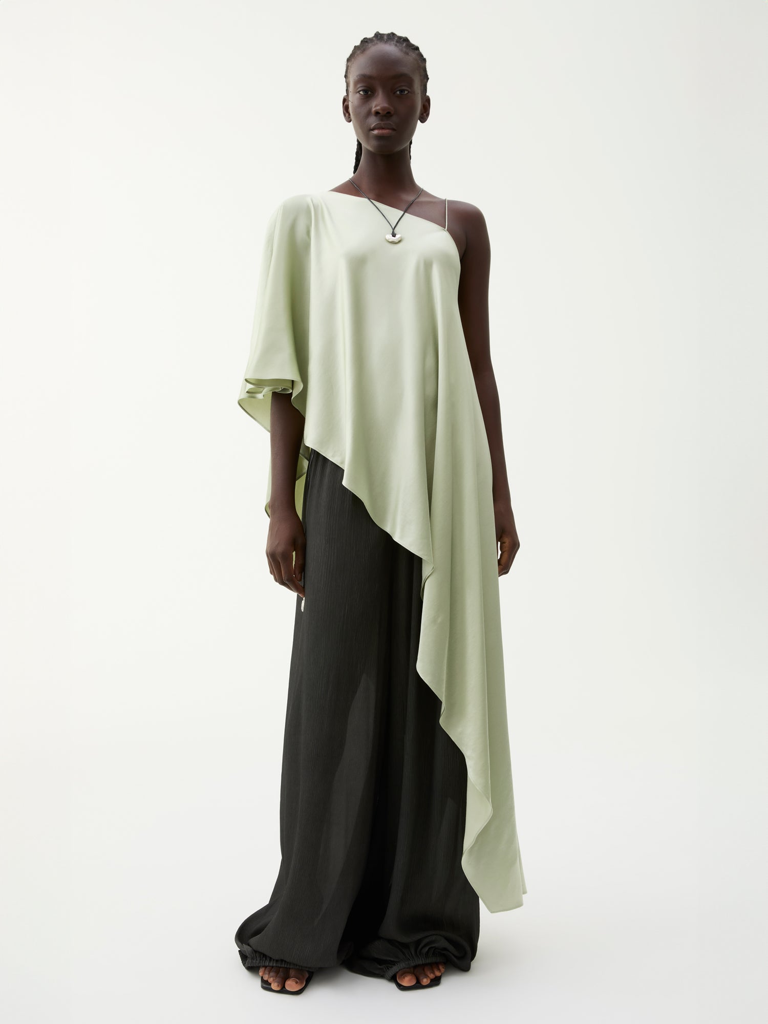 Rodebjer Melissa blouse is designed with movement in mind. Crafted from crêpe de chine with a lustrous shine and beautiful drape, this asymmetrical design has a single slender strap and cascades to sophisticated folds to one side.