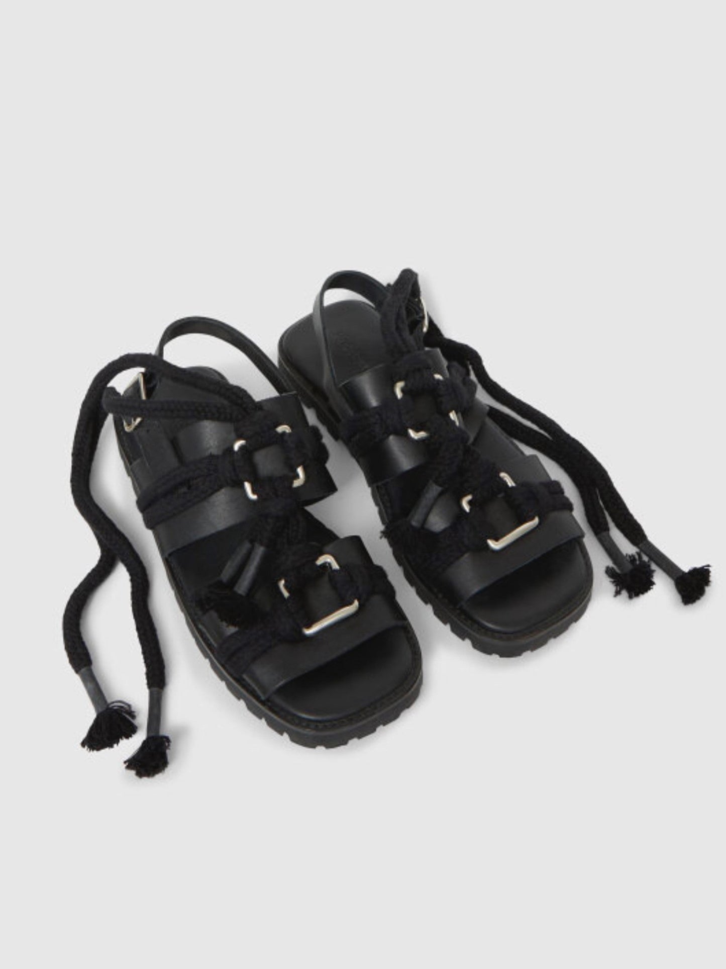 Rodebjer Tia est une sandale d'été épaisse avec une bride en cuir réglable autour du talon ouvert. Elle est conçue avec des lacets ronds épais qui donnent à ces sandales un look cool et unique.