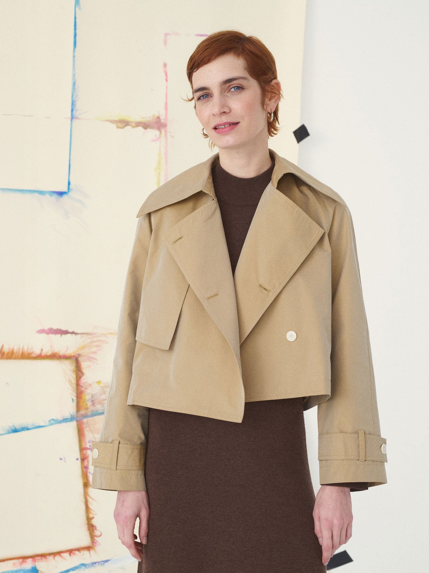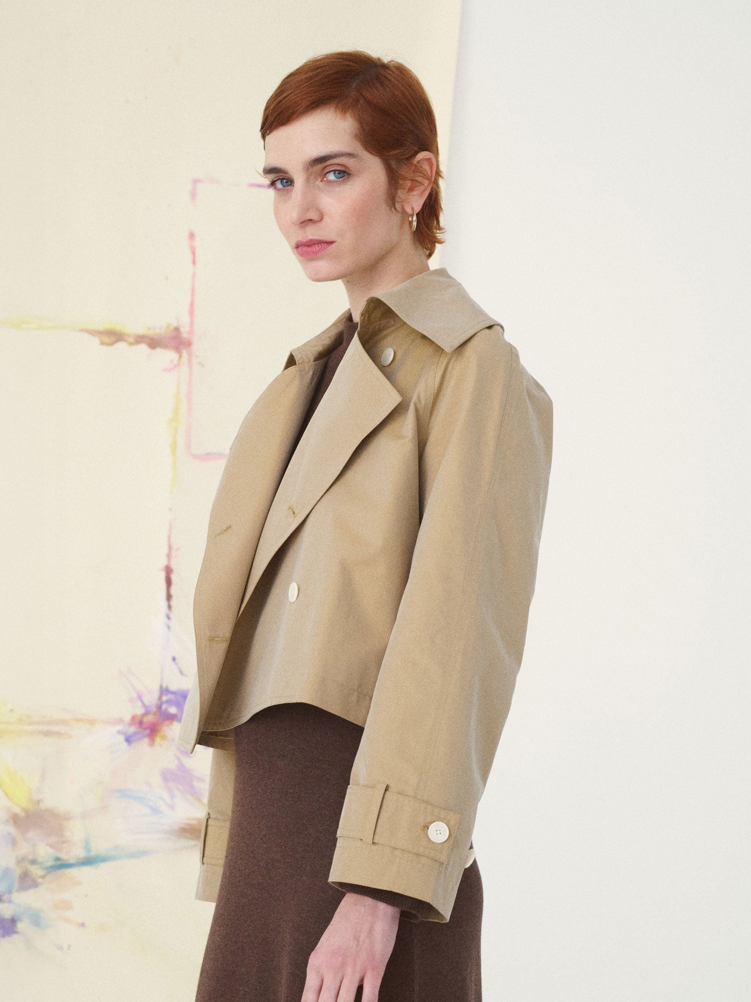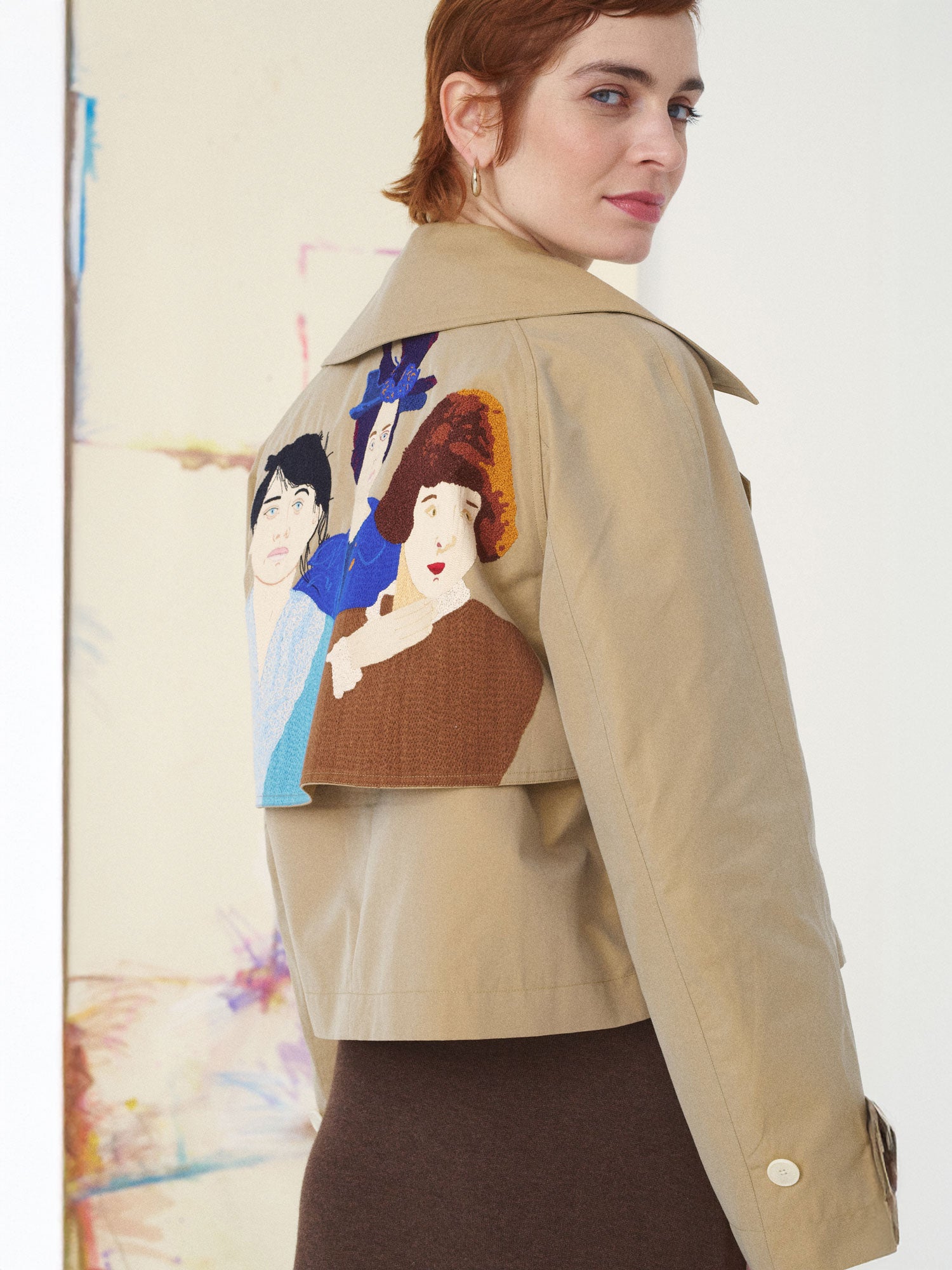 The Volver Trench is a short, water-repellent cotton jacket crafted in Mii Collection's atelier in India. Delicate hand embroidery along the lower panel celebrates the artistry of Camille Claudel, Suzanne Valadon, and Marie Laurencin, muses of this collection. With its refined finish and timeless cut, it’s an elegant, seasonless piece to treasure.