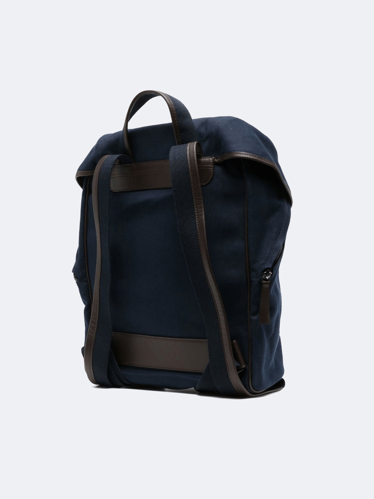 Heavy cotton waterproof canvas bag. Concealed protective zip closure, under flap cover Inside Velcro separation for iPad. Zipped inside pockets for passport and other precious documents. 100% cotton with calf leather borders and gunmetal hardware. Printed with Lion emblem, partially embroidered with padded laptop pocket.