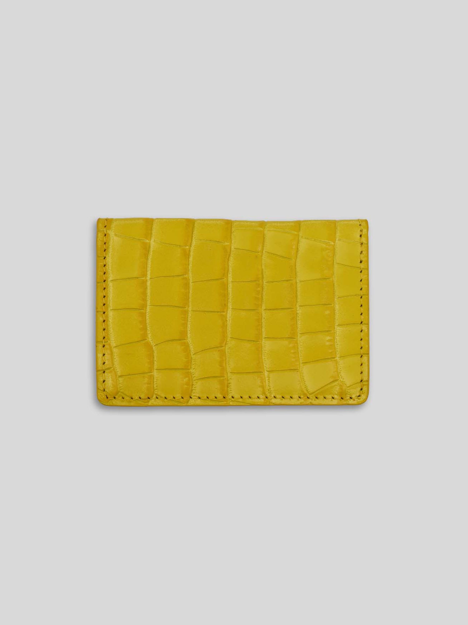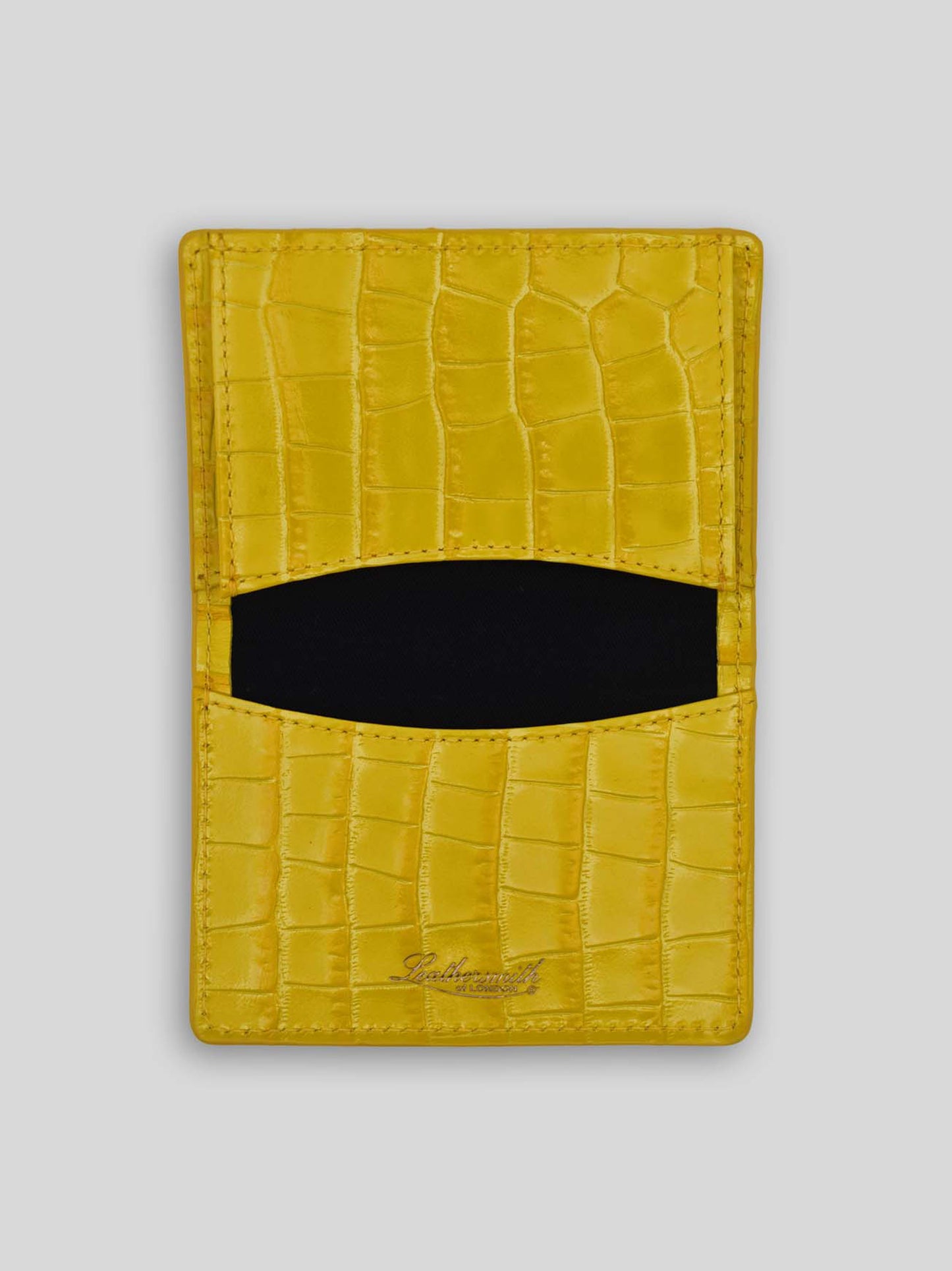 A folding leather business card holder with gusseted and flat pockets, it is bound in Rutland grained leather and finished with a cotton lining.