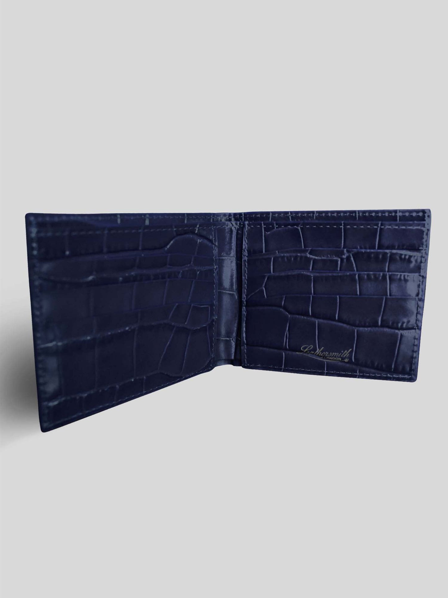 A luxurious gentlemen's billfold wallet with six credit card pockets handcrafted in Rutland grained leather with a Croc pattern texture and finished with a cotton lining.