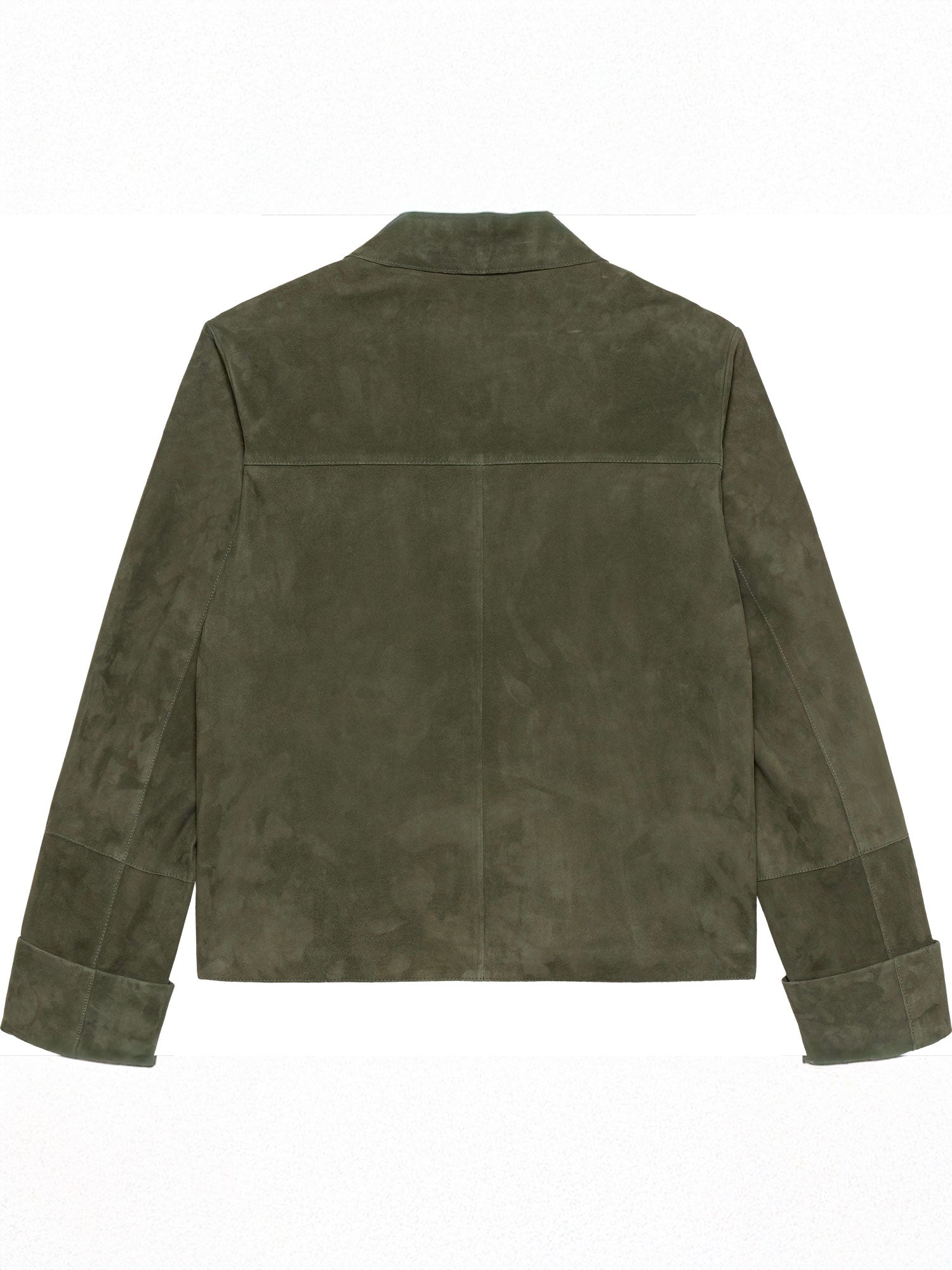 The Ella Suede Arma Jacket is crafted from luxurious goat suede, featuring a classic collar, button placket, and flap pockets. Its relaxed fit and timeless design make it a versatile piece for effortless autumn/winter style.