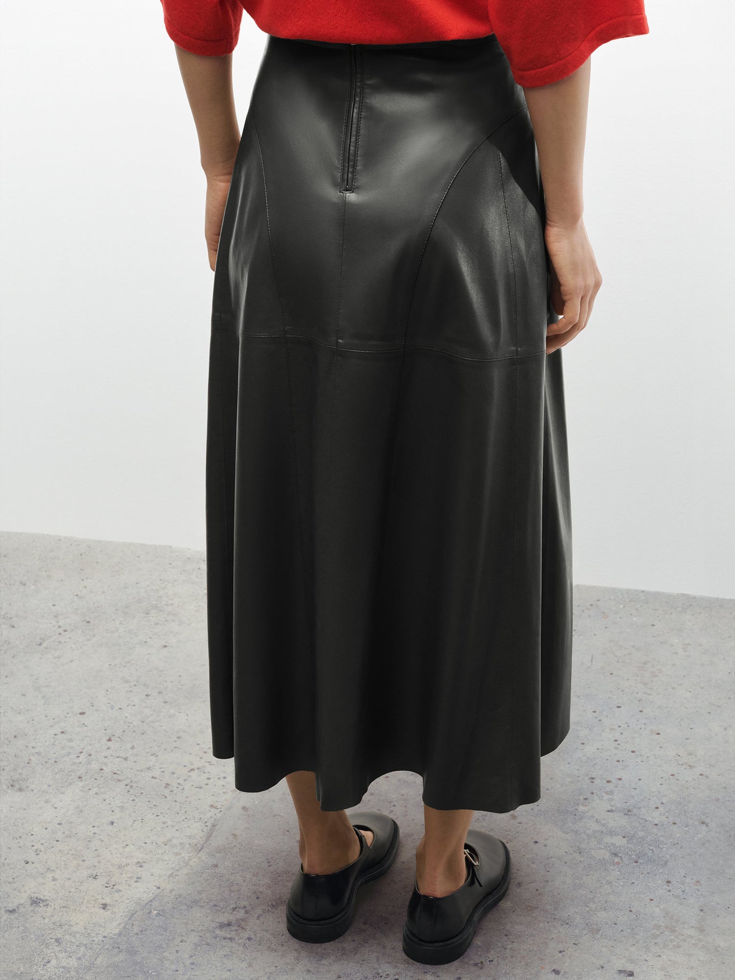 This Arma leather A-line skirt combines timeless style with a modern edge. Crafted from soft, high-quality leather, it features a flattering A-line silhouette that gracefully falls to a midi length. Its rich leather texture offers both elegance and durability, making it a wardrobe staple for years to come. Fits true to size.