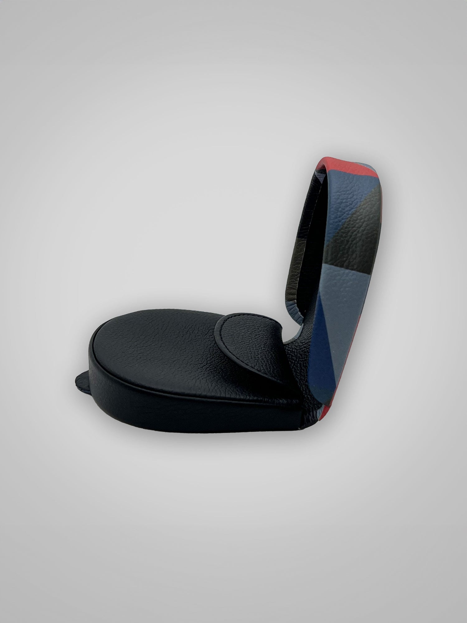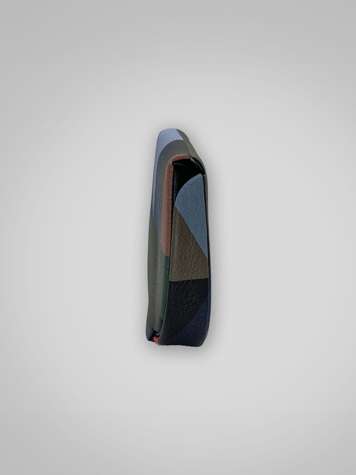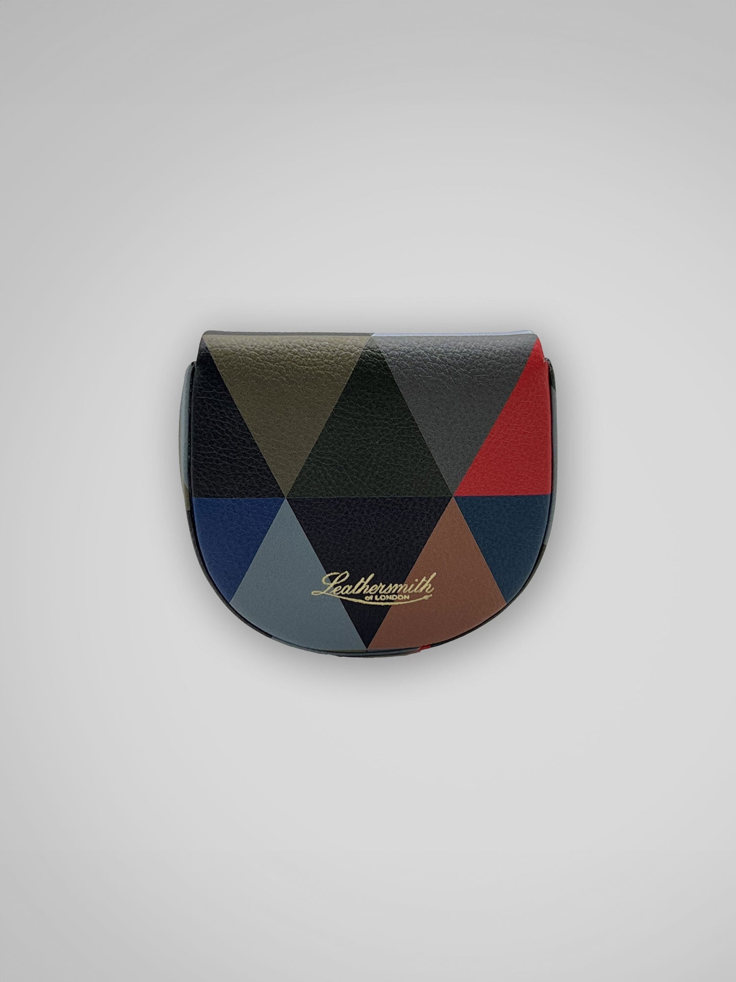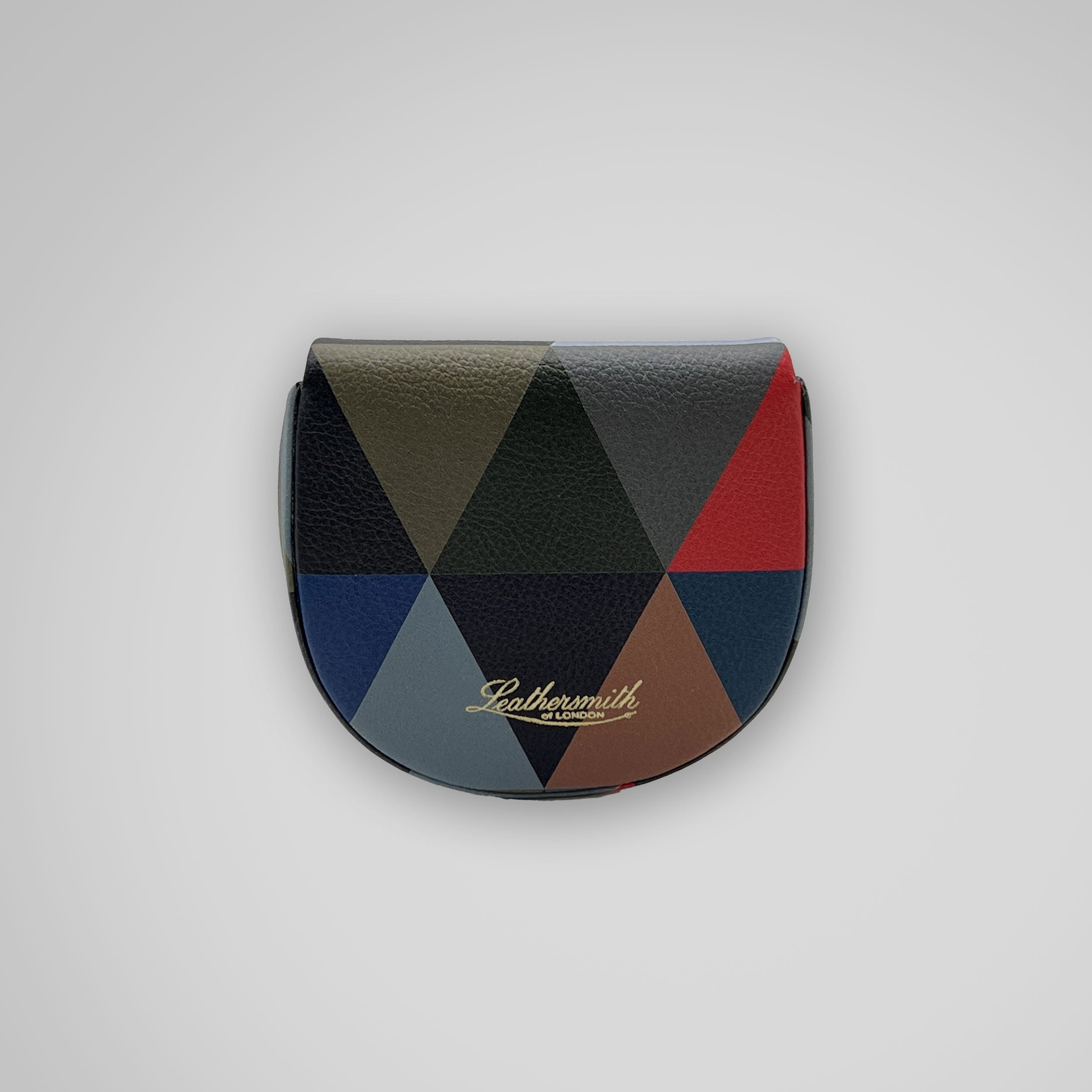 Leathersmith geometric coin purse made from 100% calf leather and with a 65% polyester, 35% cotton lining.