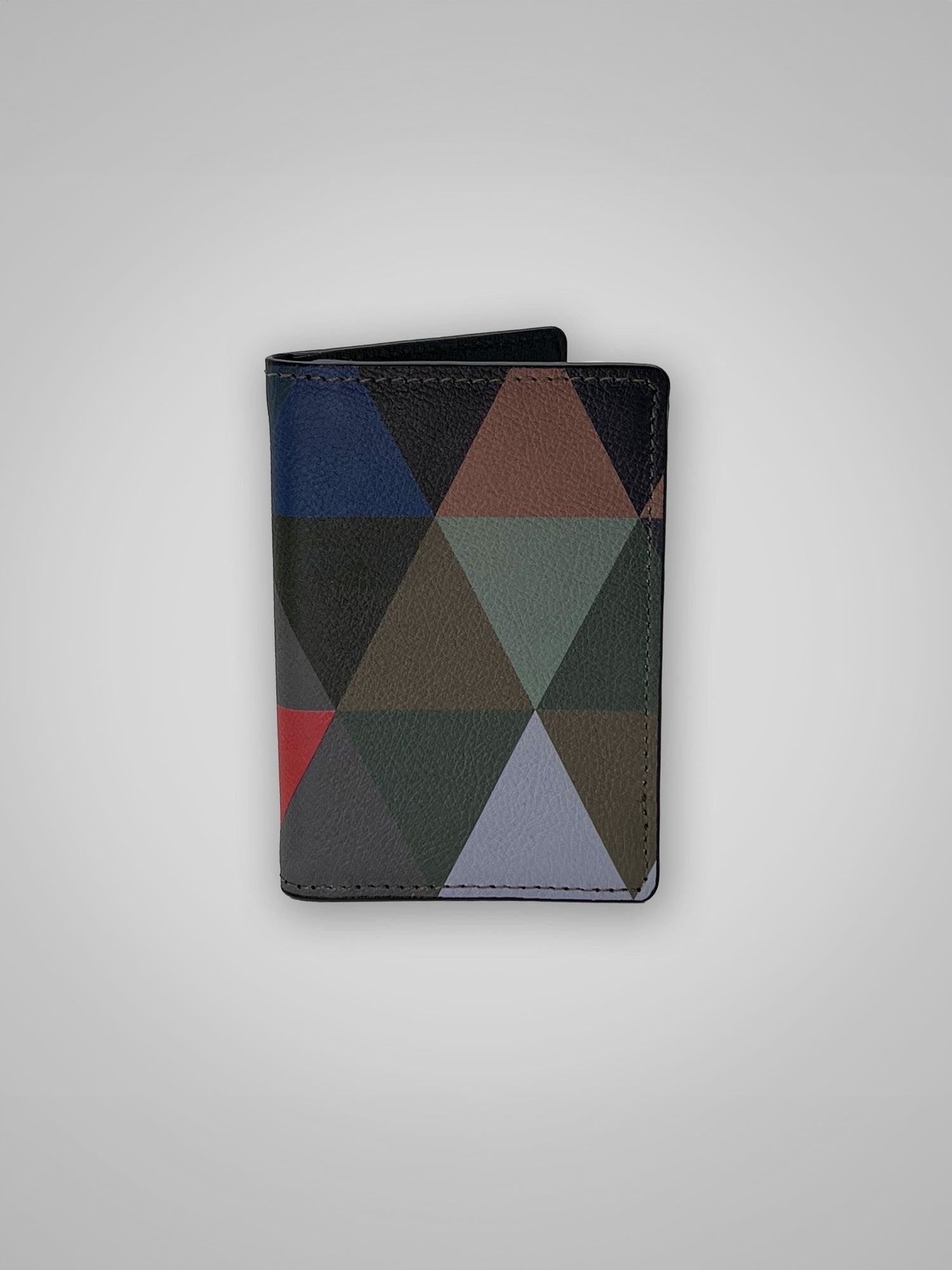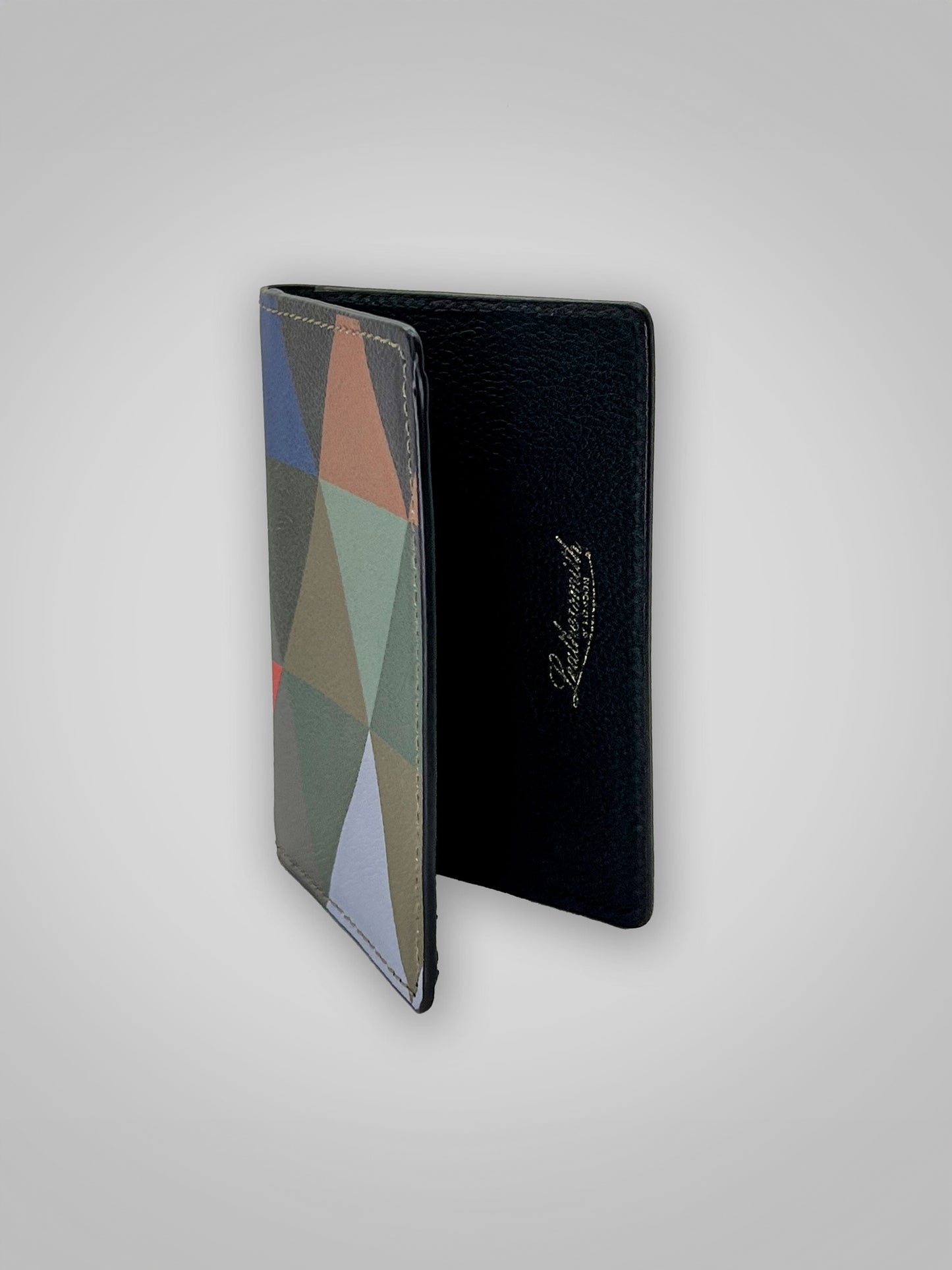 Leathersmith geometric wallet made from 100% calf leather and with a 65% polyester, 35% cotton lining.