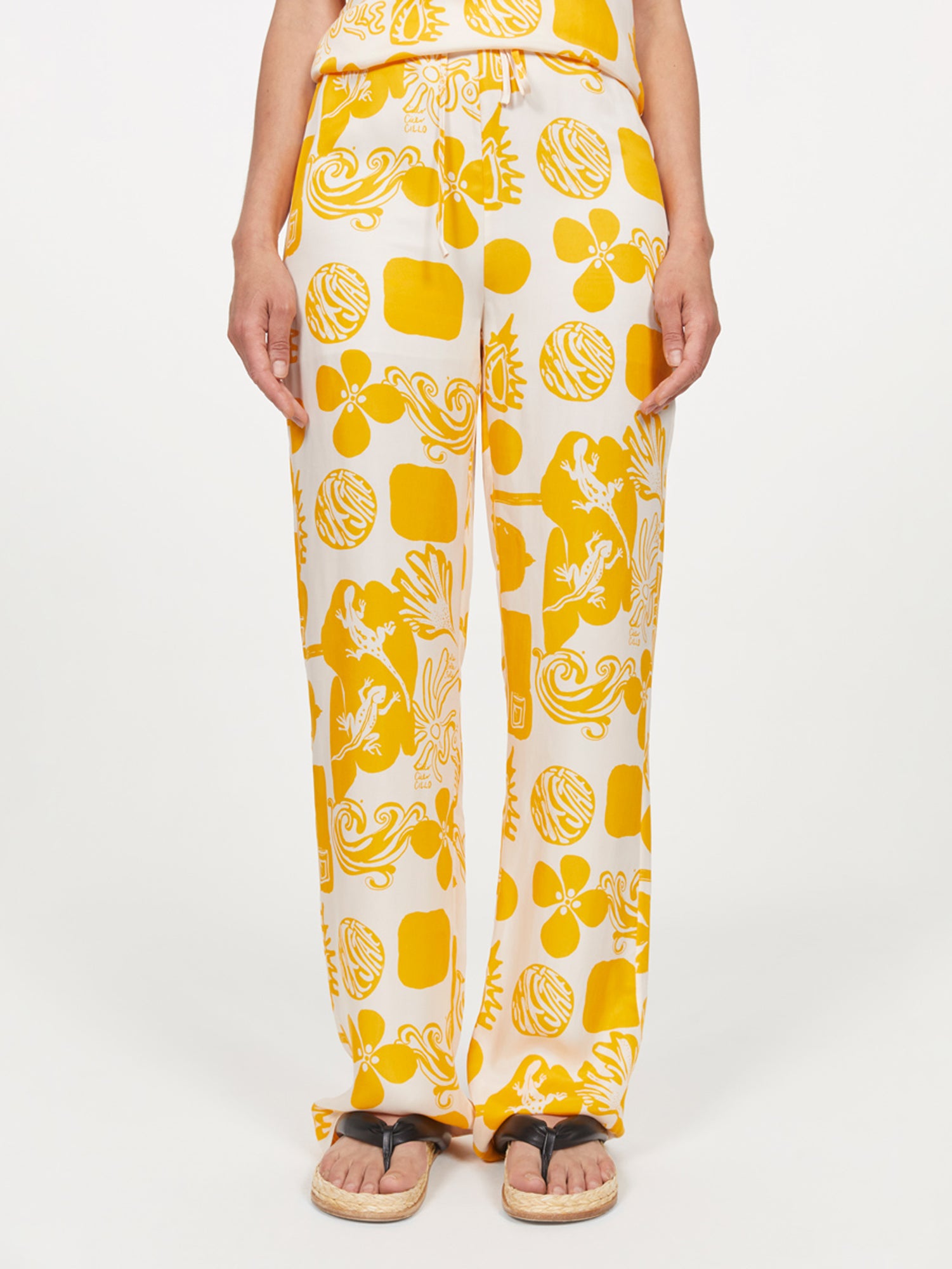 Illustrated with Rodebjer’s summery Sketchbook print, the Lunara pants are made from a viscose and cupro twill with a sandwashed finish that lends it a silken finish and elegant drape. This relaxed design falls to straight legs, and can be adjusted at the mid-rise waist with adjustable drawstrings.