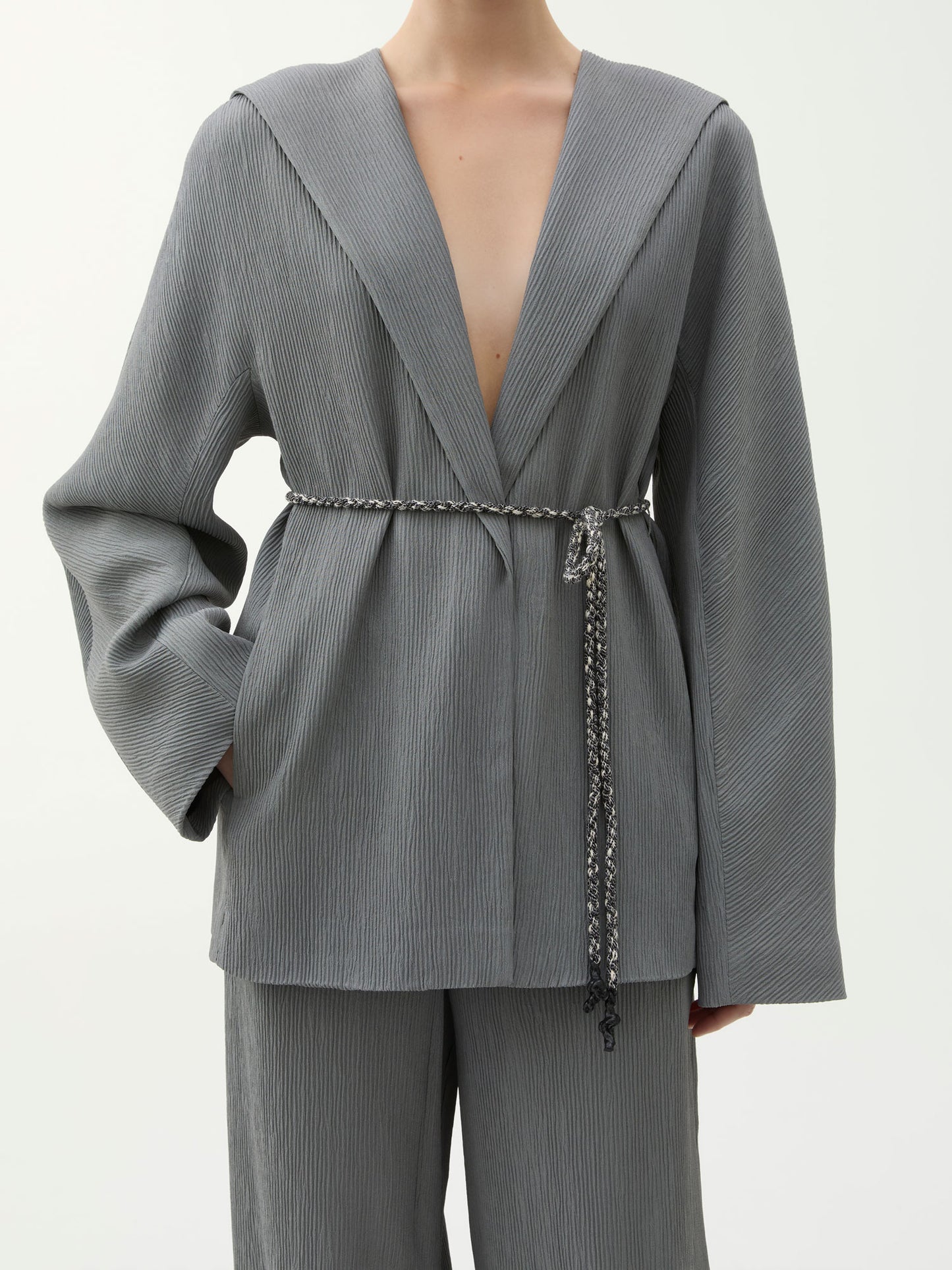 This Rodebjer Pam blazer is designed for a relaxed fit. It features a deep-V neckline, perfect for layering. Complete with a cord belt, it cinches beautifully over flowing dresses or matching trousers.