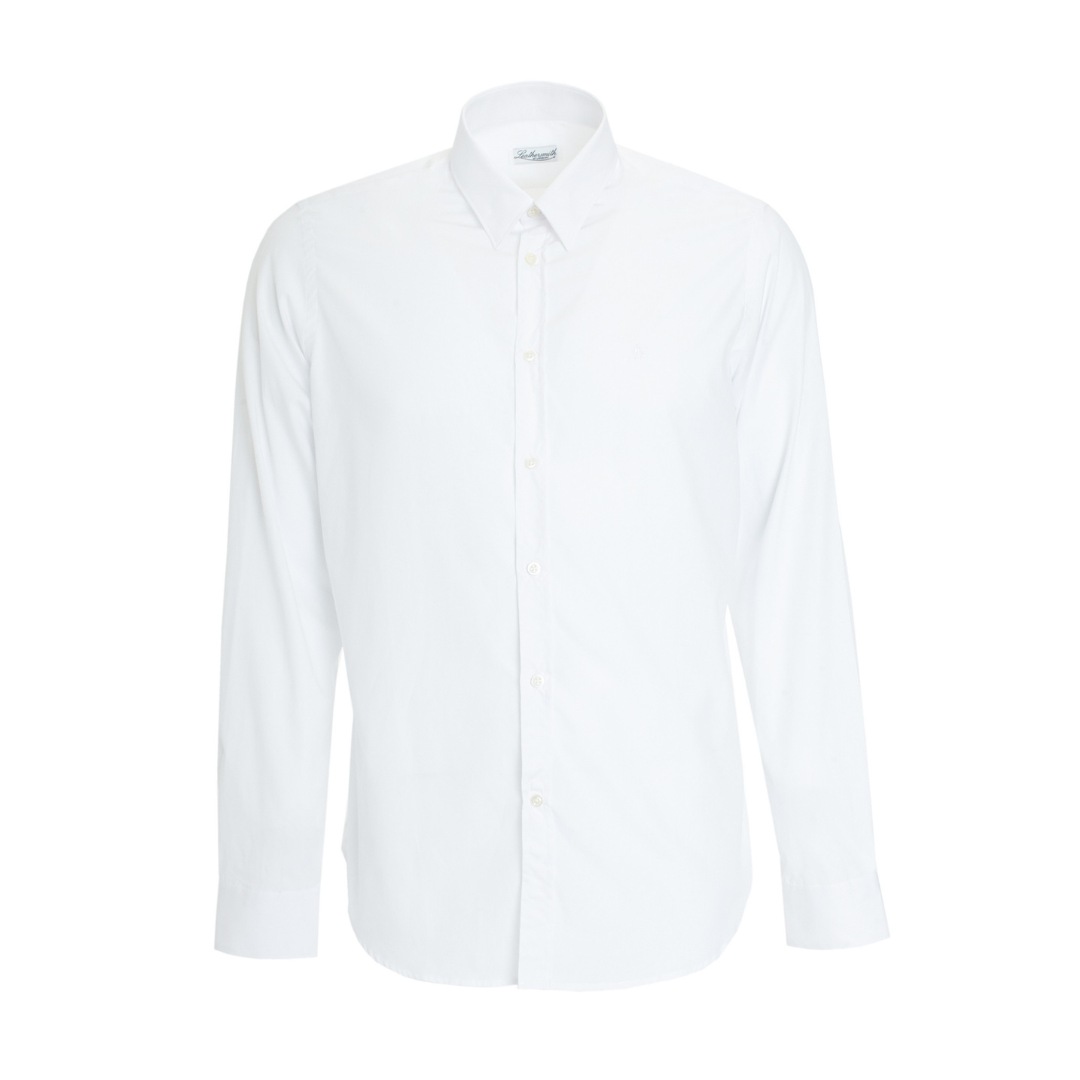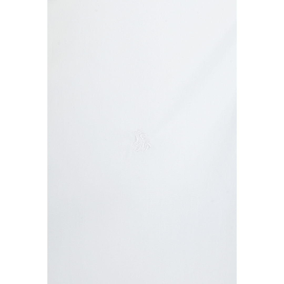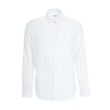 Leathersmith signature, classic button up shirt, made from crisp white striped 100% cotton-poplin. This shirt is a versatile, staple piece, easy to layer and pair up with jeans or chinos. Detailed simply with a smart collar and buttoned cuffs with a curved hemline that can be worn loose over trousers or tucked in. Regular fit.