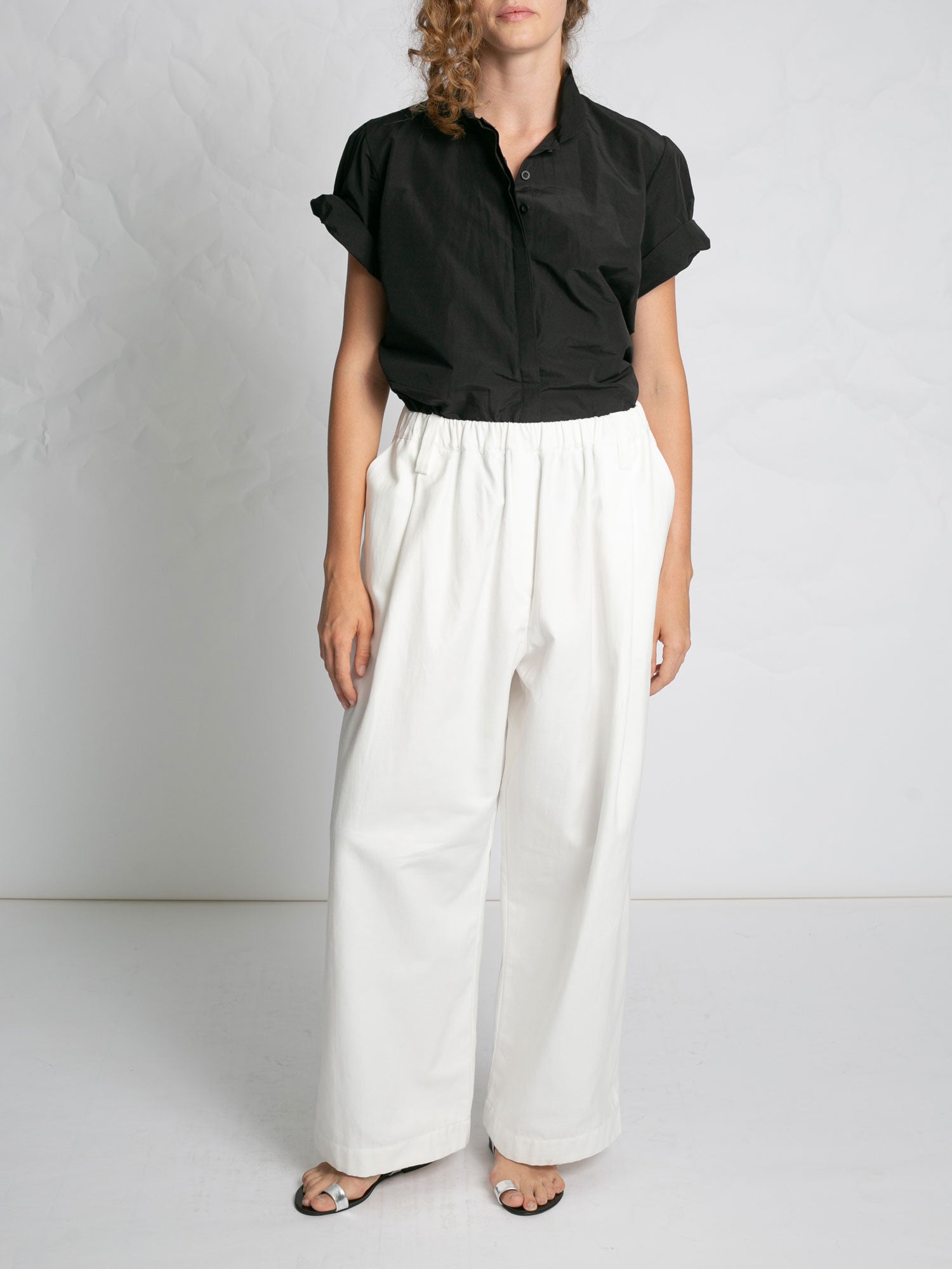 From Les Filles d’Ailleurs, these relaxed white trousers are crafted from soft cotton for ultimate comfort. Designed with an elasticated waistband and practical pockets, they feature a straight-leg silhouette that balances elegance with ease. A versatile wardrobe staple that pairs effortlessly with everything while maintaining a refined yet laid-back feel.