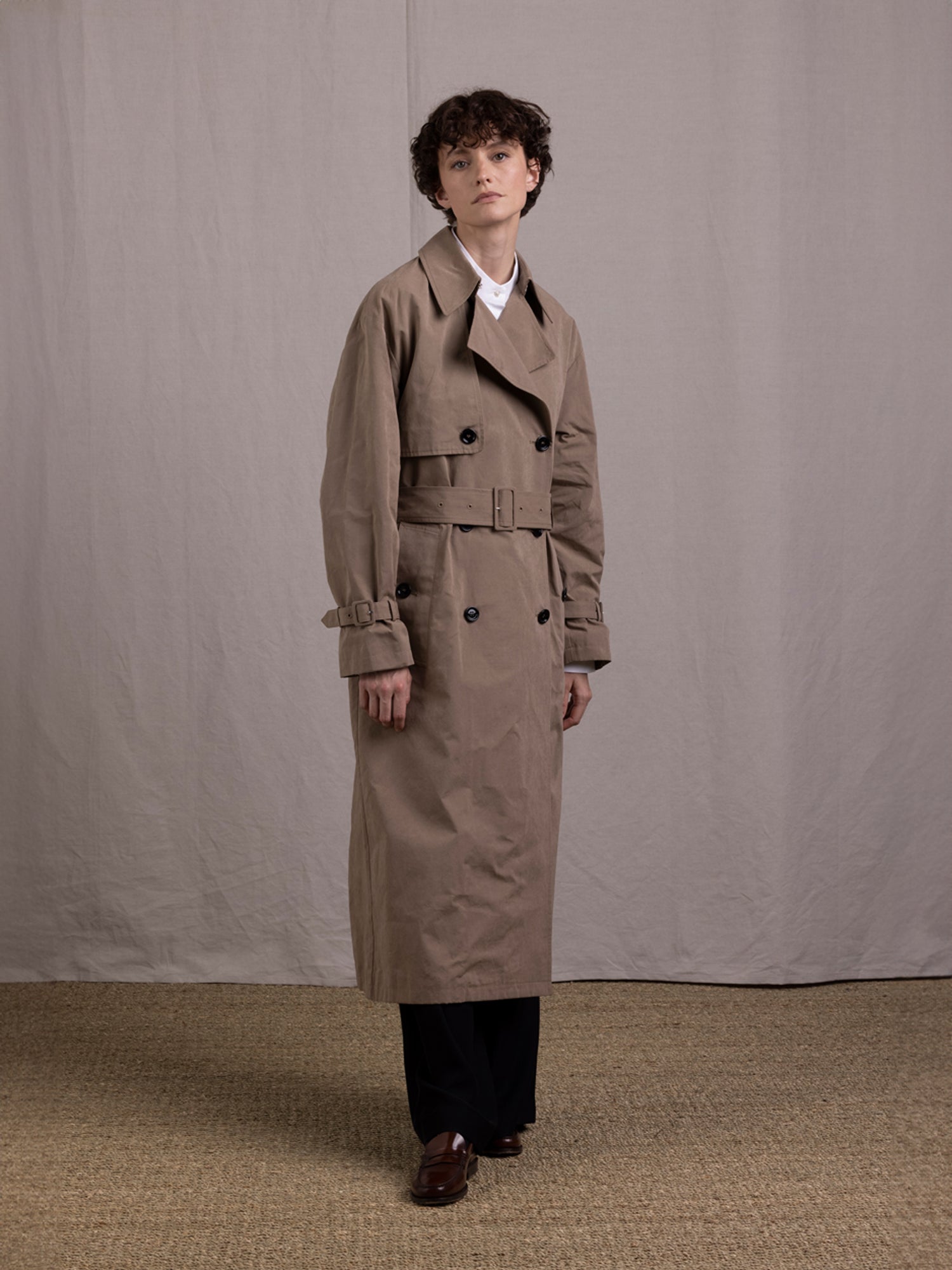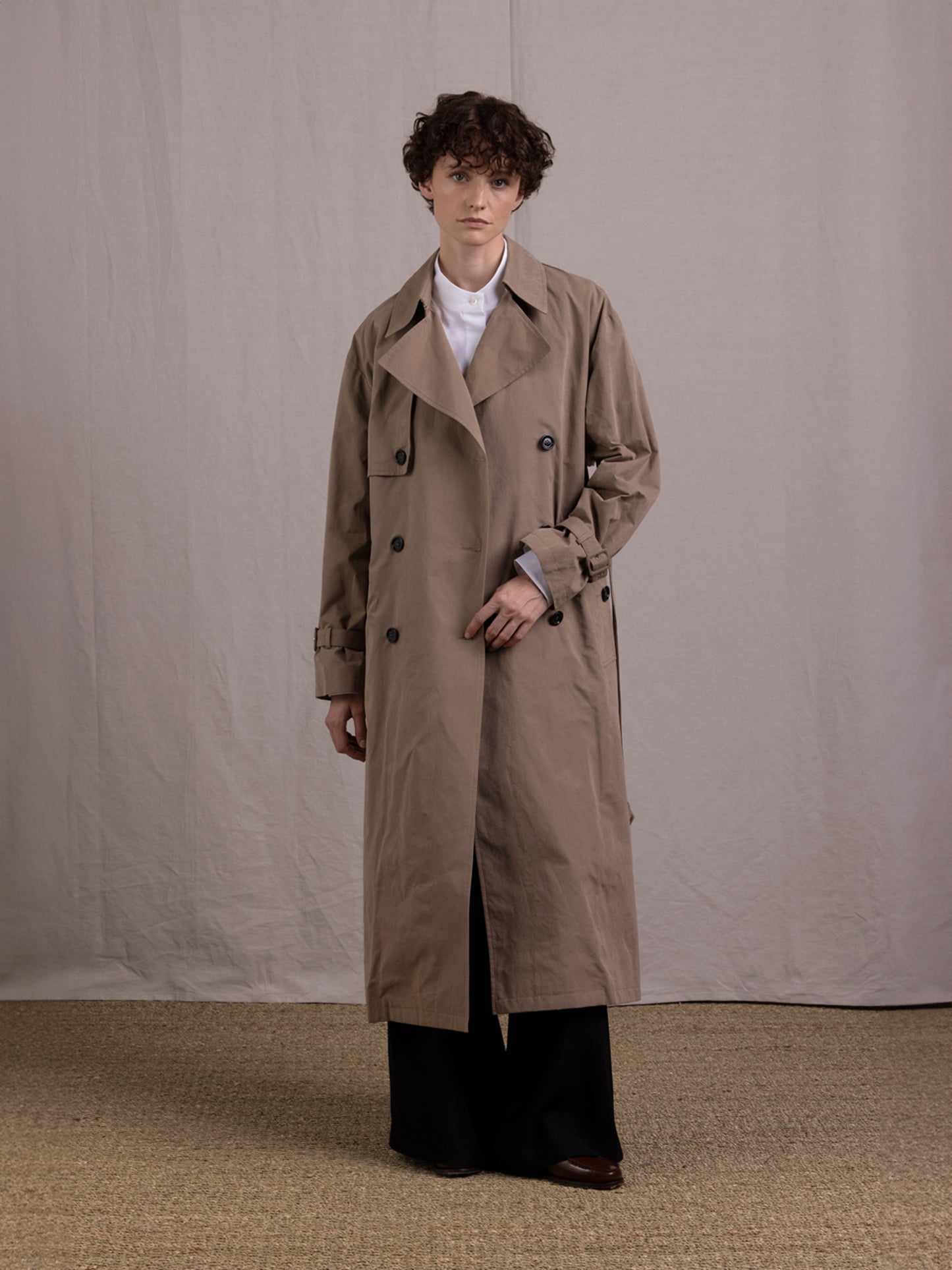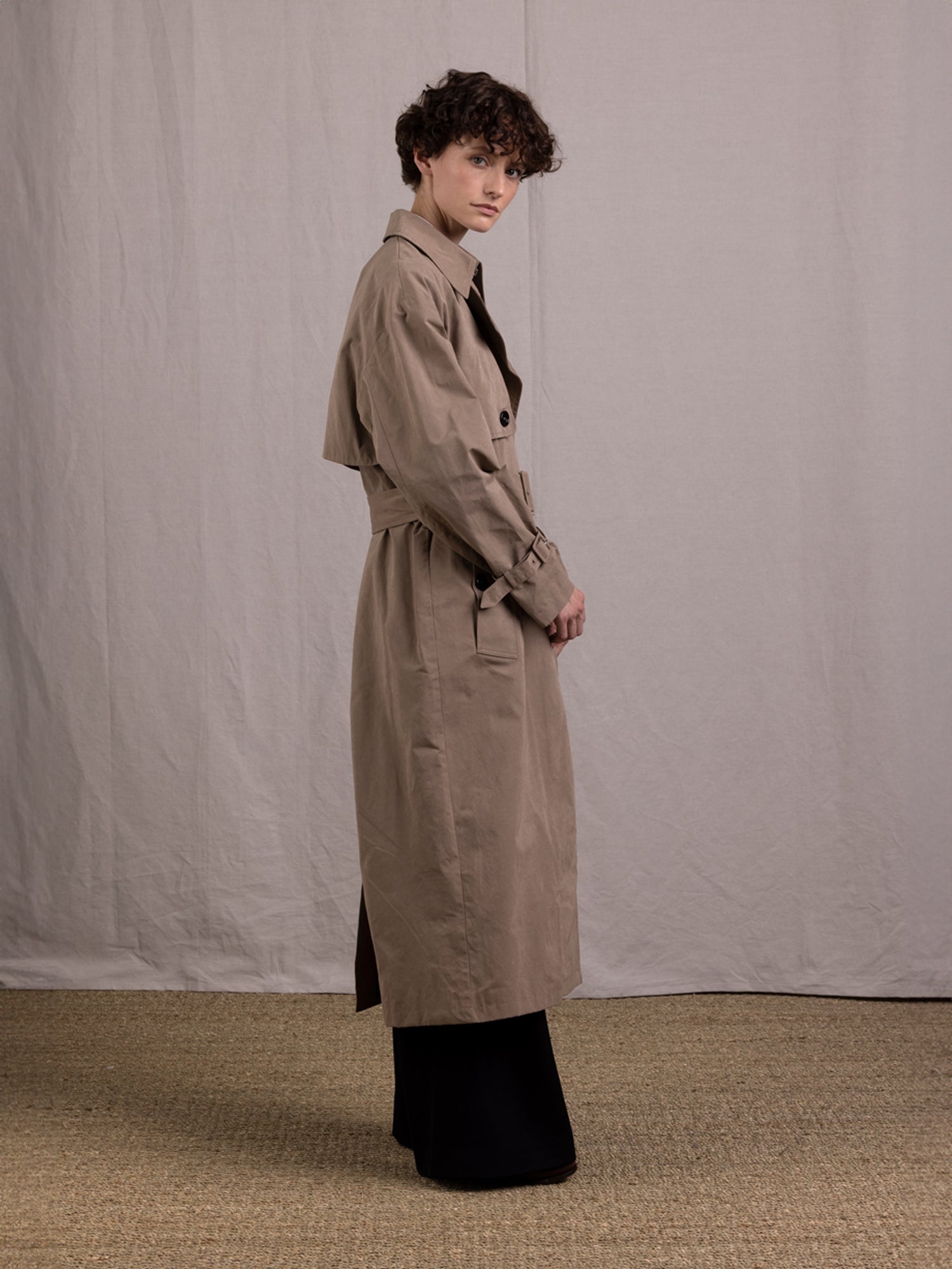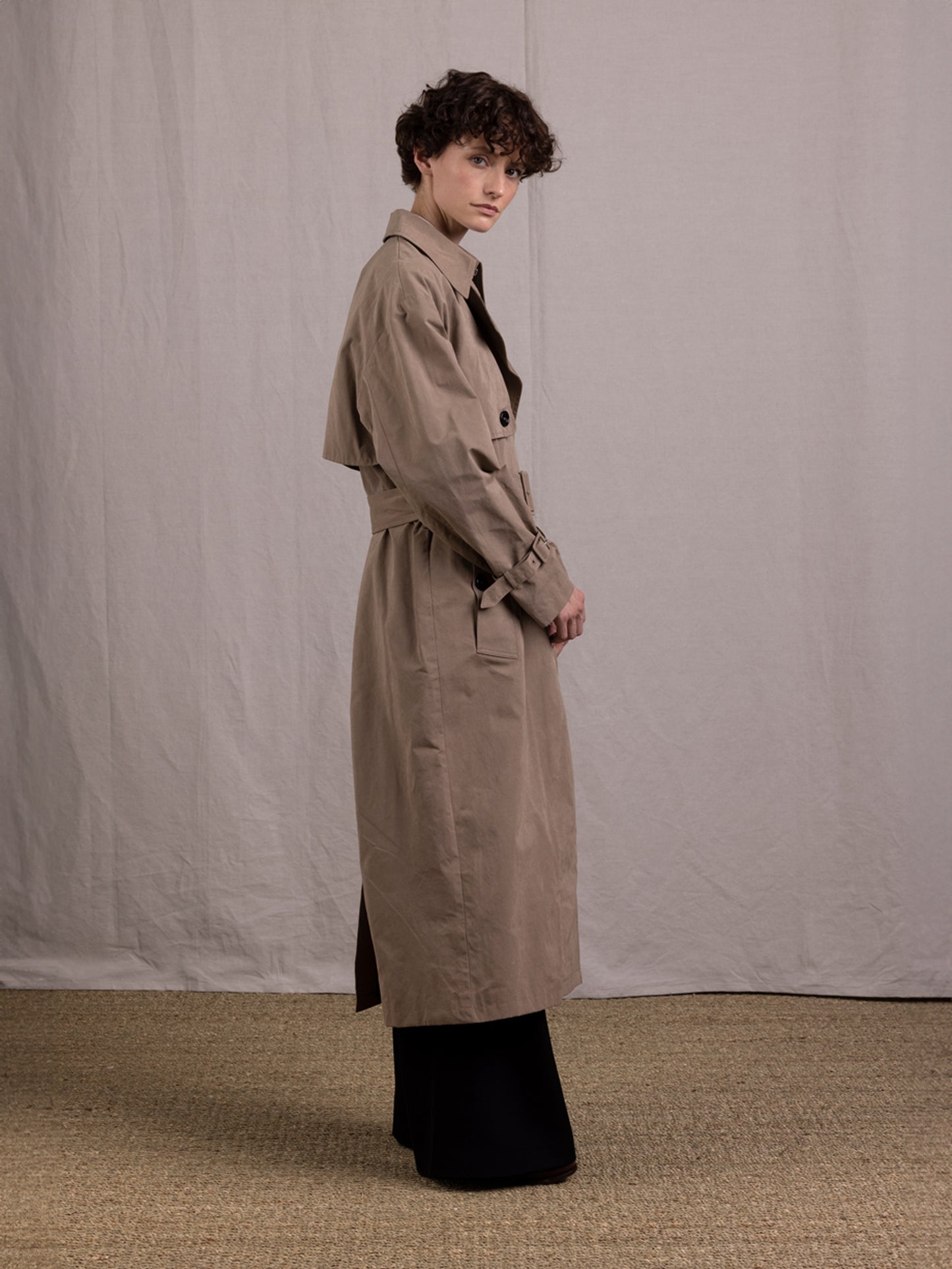 This Maison Lener oversized trench coat is made of water repellent cotton blend.